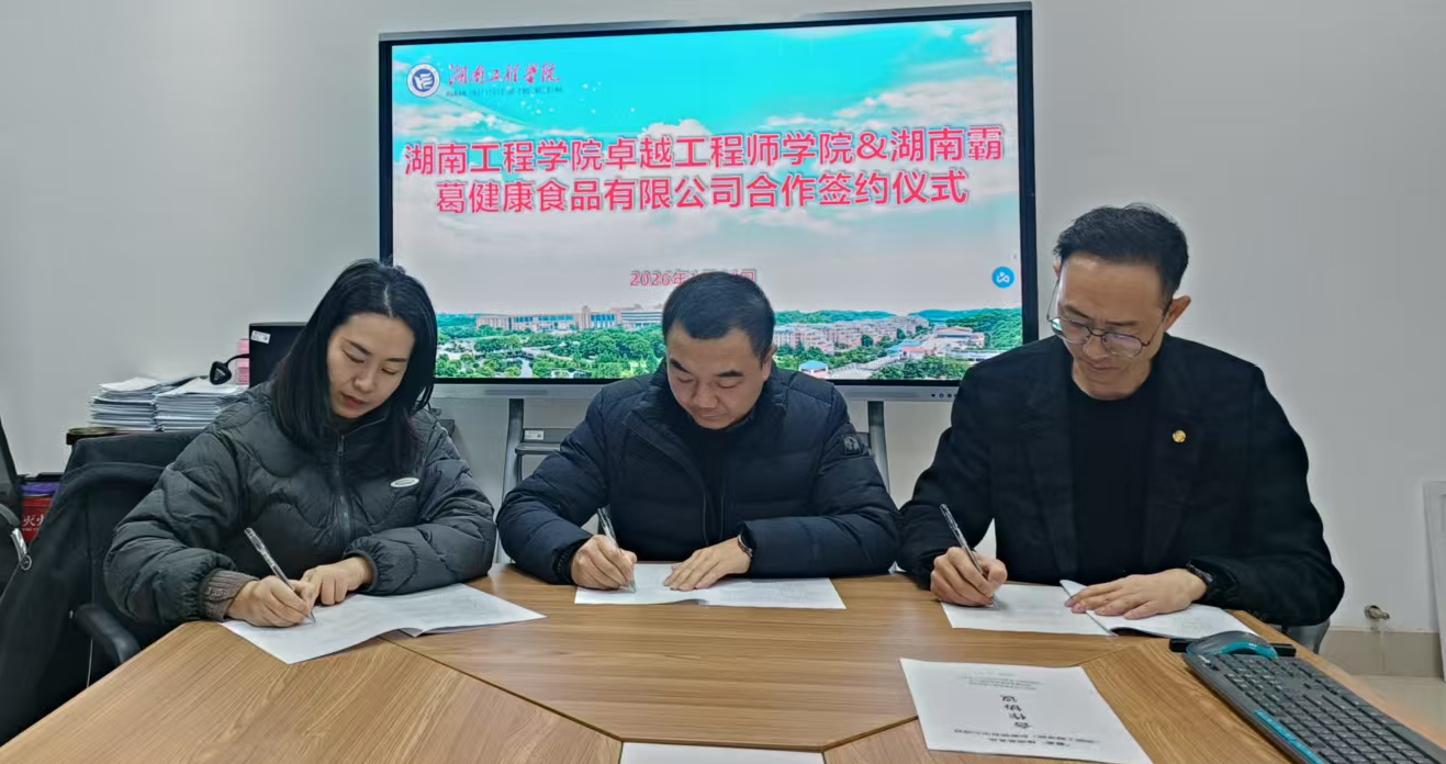 1月21日上午,湖南工程学院卓越工程师学院、湖南霸葛健康食品有限公司、湘潭创达产教孵化有限公司三方在该校双创楼109会议室签署共建"霸葛"植物基食品创新研究中心协议。三方合作将聚焦大学生创业核心需求,为青年搭建优质创业实战平台。